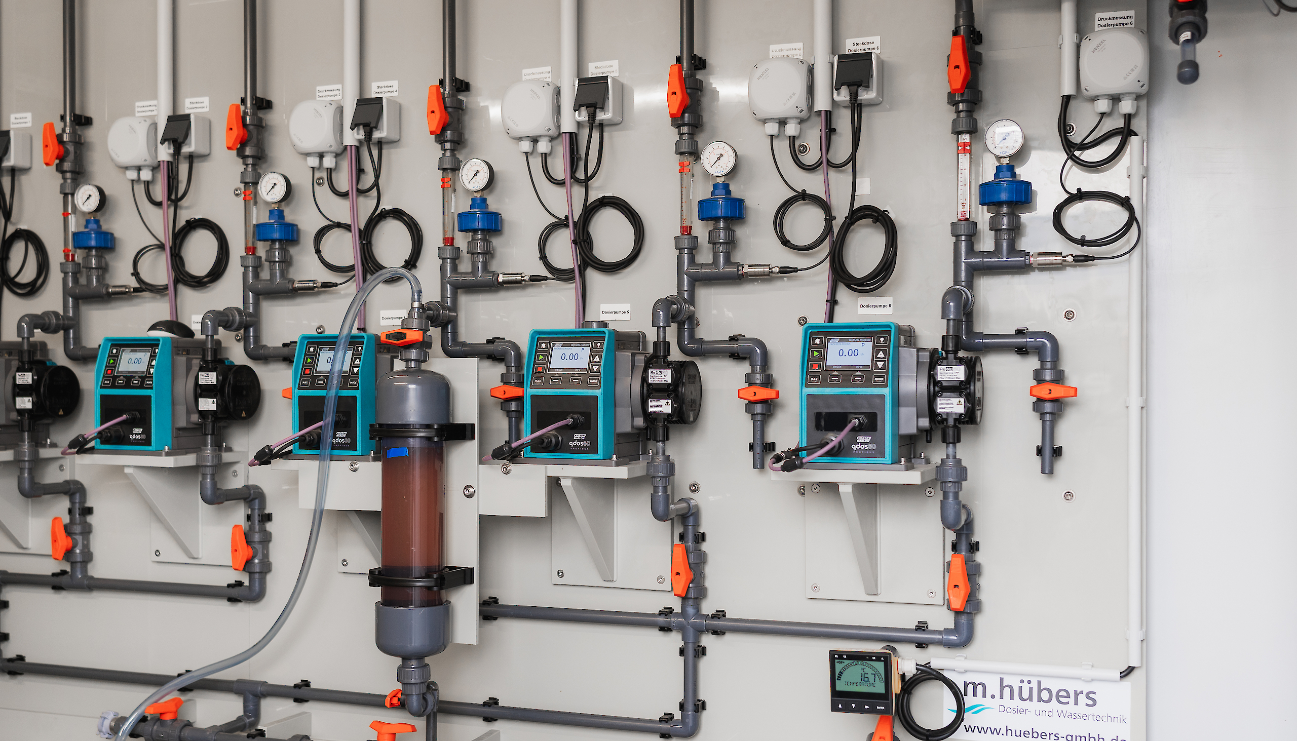 Unsere Mess- und Regeltechnik ermöglicht die präzise Überwachung aller relevanten Trinkwasserparameter in Echtzeit. Sie steuert Prozesse automatisch und trägt entscheidend dazu bei, die Wasserqualität dauerhaft zu sichern. Planung und Integration erfolgen gemeinsam mit marktführenden Partnern – passgenau für eure Anlage.